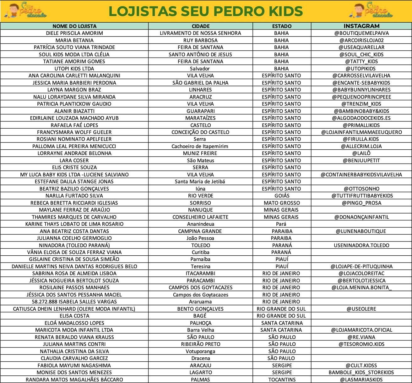 Abaixo os Lojistas de cada CIDADE e ESTADO!
